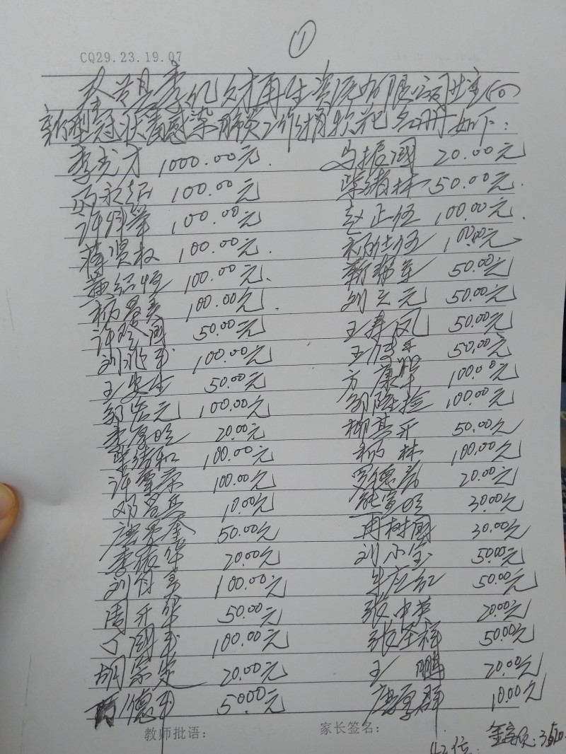 奉节县李亿财再生资源有限公司118名爱心人士为抗击新冠肺炎疫情捐款公示